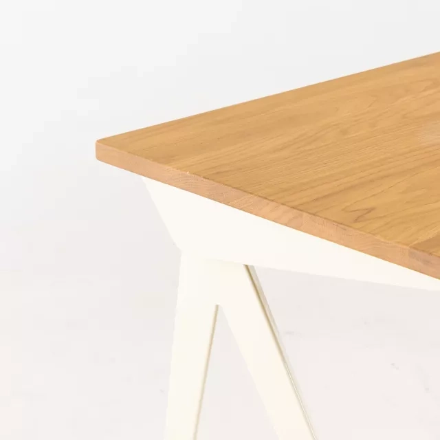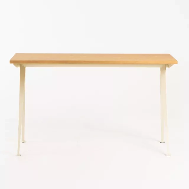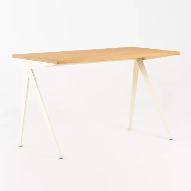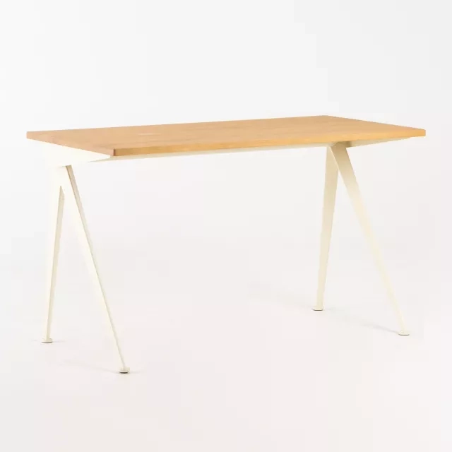 Skrivbordet Compas Direction från Vitra är en anmärkningsvärd möbel designad 1953 av Jean Prouvé, med ett stativ i bockad stålplåt och Ercu-lackerad yta. Bordsskivan är i massiv, naturlig ek och tillför elegans till varje arbetsplats. Som ett utställningsexemplar framstår detta skrivbord i nyskick, utan några bruksspår.