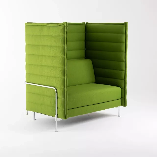 Vitra Alcove är en soffa designad av Ronan och Erwan Bouroullec som erbjuder arkitektonisk sittning med höga sidoväggar för avskildhet i aktiva kontorsmiljöer. Denna återbrukade soffa Alcove från Vitra lämpar sig för öppna kontor, loungeytor och fokuszoner där lugna samtal och koncentrerat arbete behöver stöd. Den omslutande formen minskar visuella intryck och möjliggör informella möten utan fasta väggar.