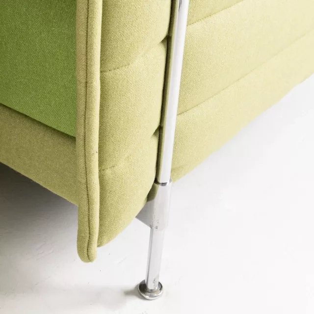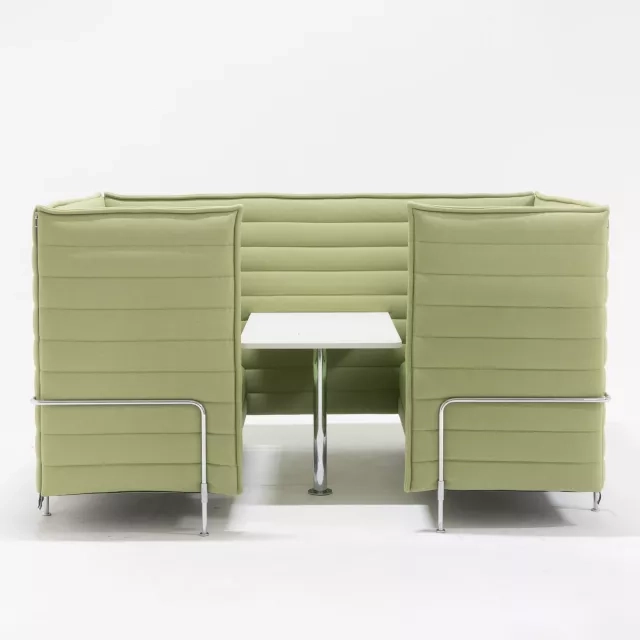 Soffan Alcove från Vitra, formgiven av Ronan och Erwan Bouroullec, skapar avskildhet i öppna kontorsmiljöer. Denna begagnade lösning är klädd i grönt tyg med ett lugnt, modernt uttryck. Sittgruppen erbjuder 4+3 platser. Soffan Alcove från varumärket Vitra lämpar sig för team och besökare.